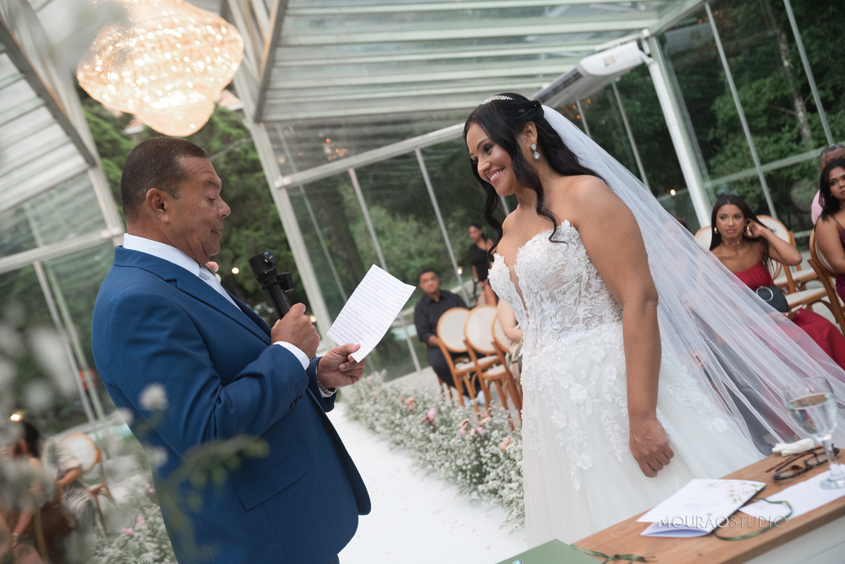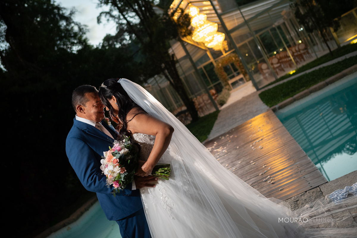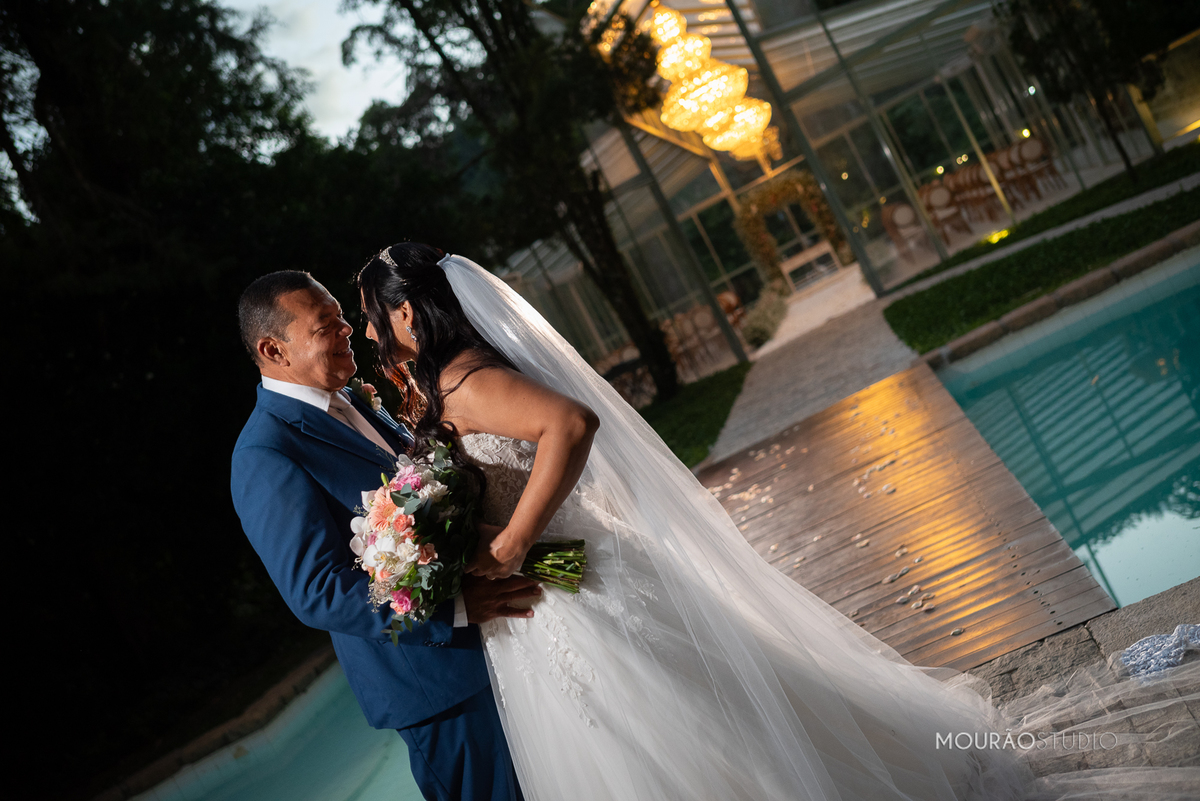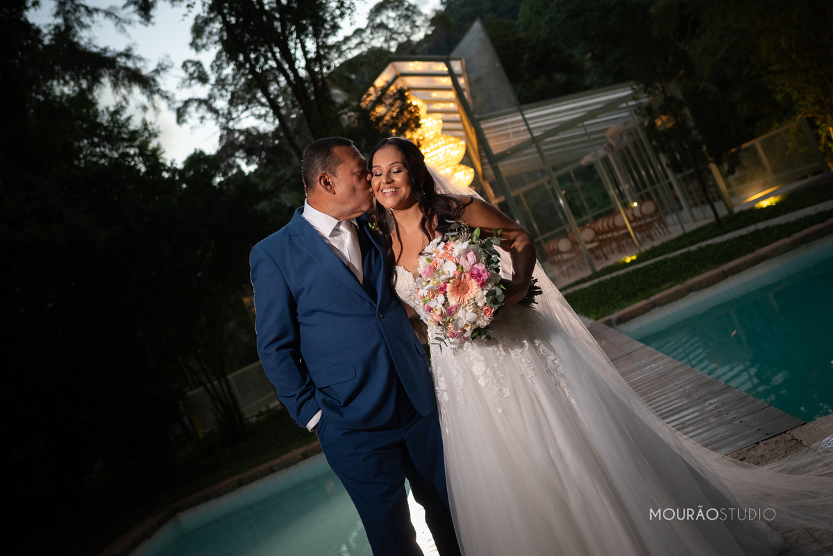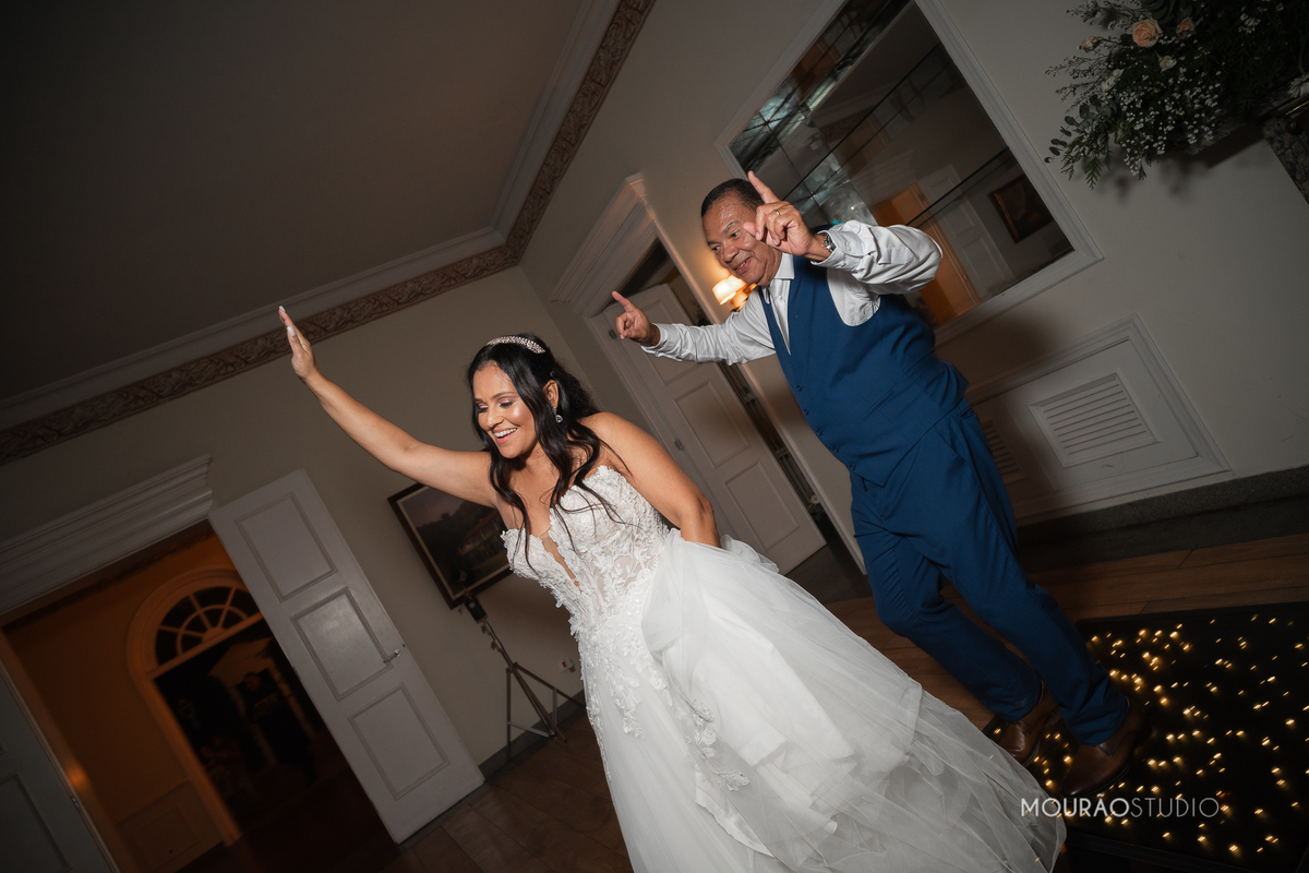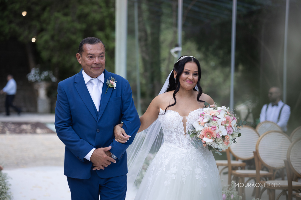 Emoldurado pela arquitetura histórica e imponente do Chateau do Lago, no Rio de Janeiro, o casal celebrou sua união em um cenário escolhido a dedo, onde cada detalhe clássico parecia reverenciar a força dessa história.