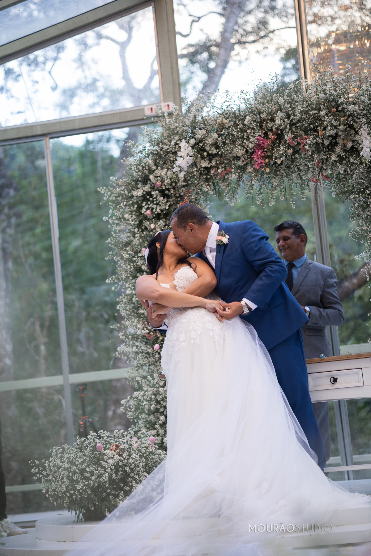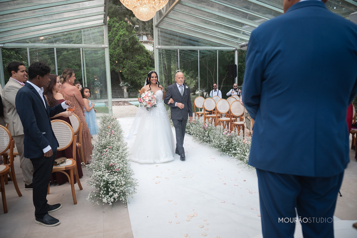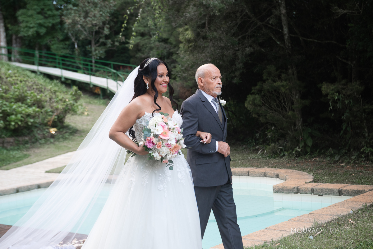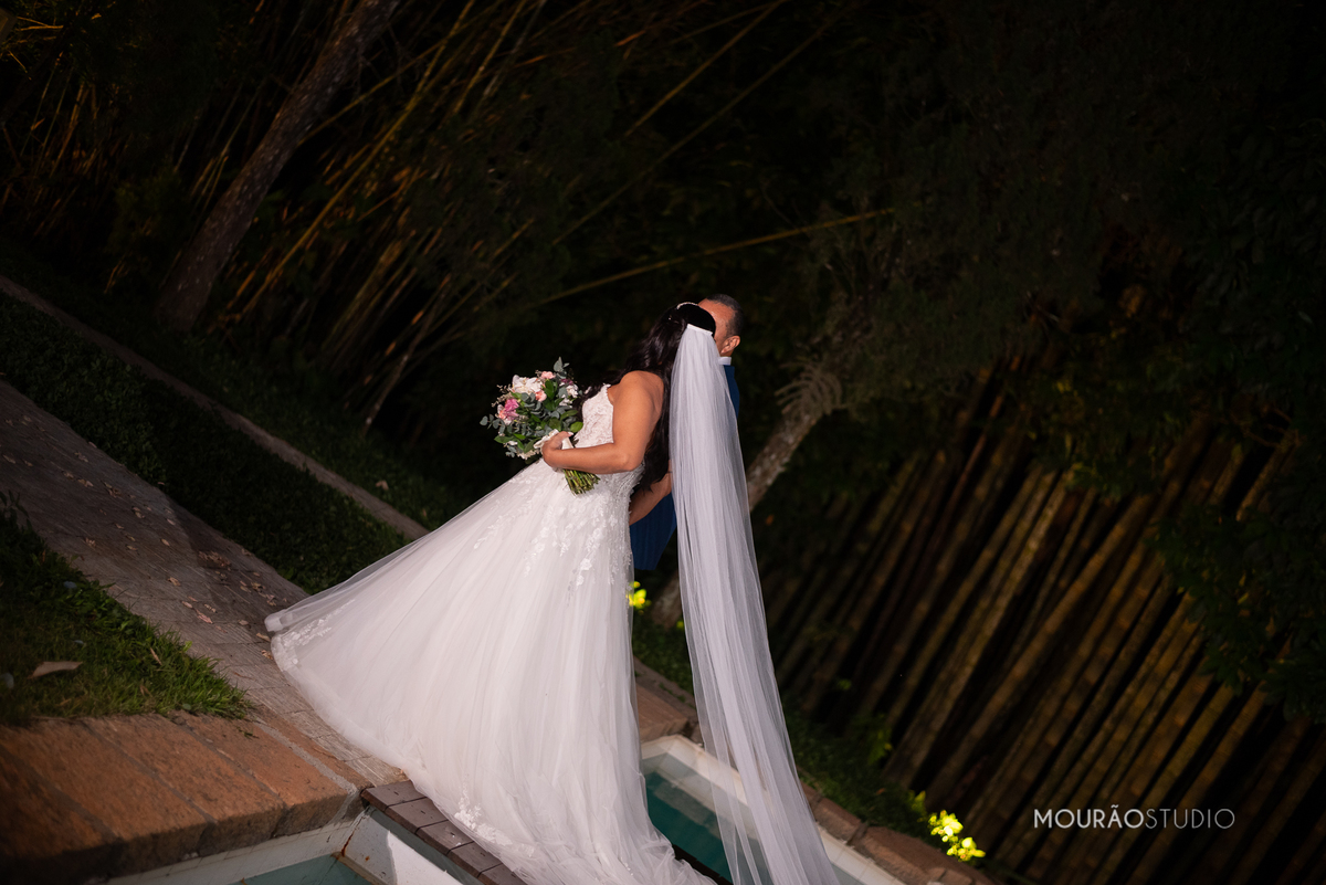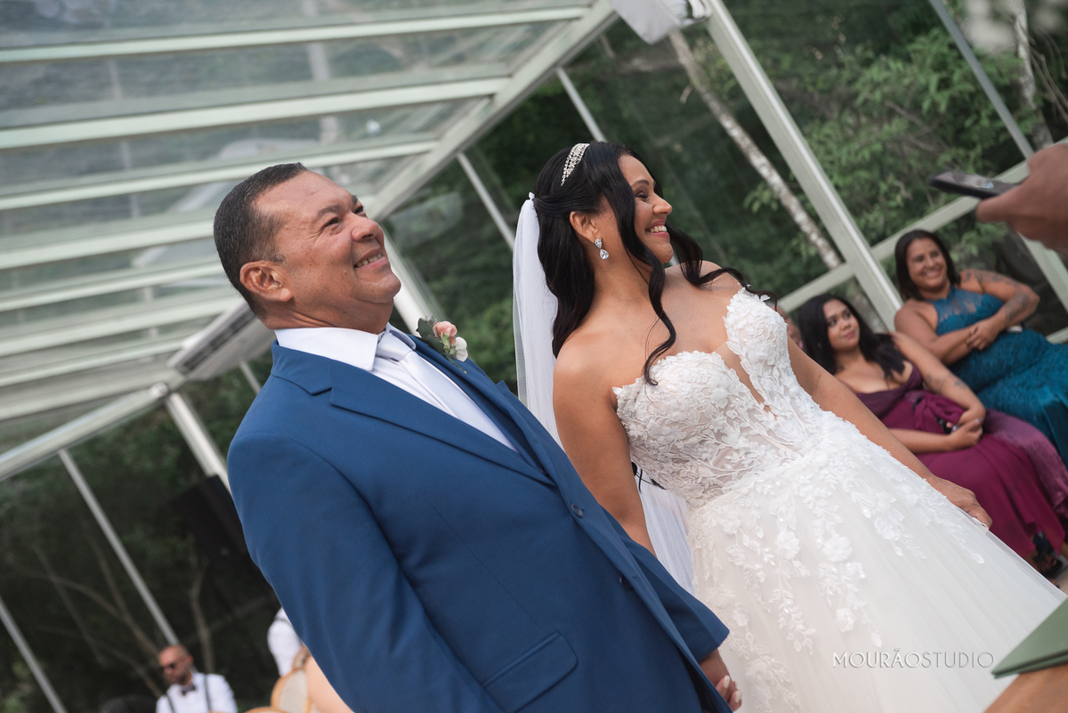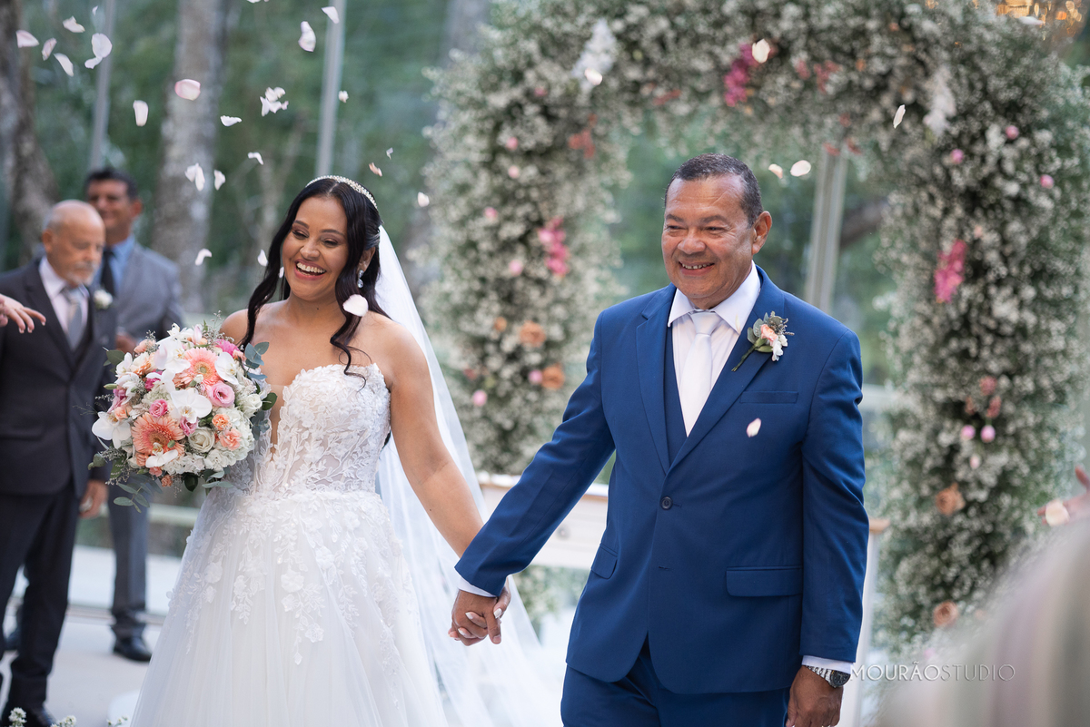 Emoldurado pela arquitetura histórica e imponente do Chateau do Lago, no Rio de Janeiro, o casal celebrou sua união em um cenário escolhido a dedo, onde cada detalhe clássico parecia reverenciar a força dessa história.